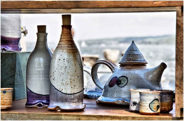 Poteries décoratives et utilitaires en faïence.
