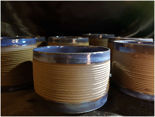 - Poteries utilitaires et décoratives en grès rouge ou noir décoré.