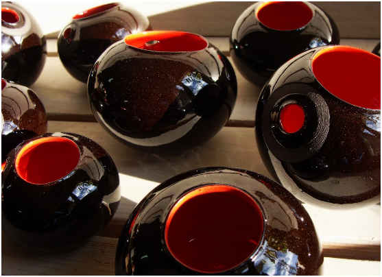 Je tourne des pièces utilitaires, décorative et sculpte suivant mon inspiration du jour, de la faïence blanche, rouge et noire.