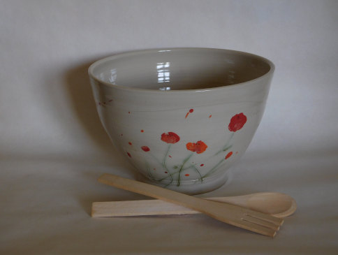 Je réalise des pièces en grès décoratives ou utilitaires, pour lesquelles je fabrique mes propres émaux aux couleurs inspirées des fleurs de printemps de la vallée.